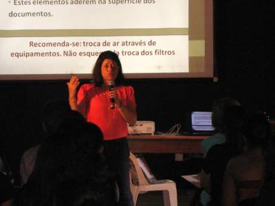 | Image description: Dione Seripierri, dia 18/09/12, falou sobre conservação de documentos, na V Jornada de Memória e Arquivologia. | Last modified: September 26 2012 14:31:00 |